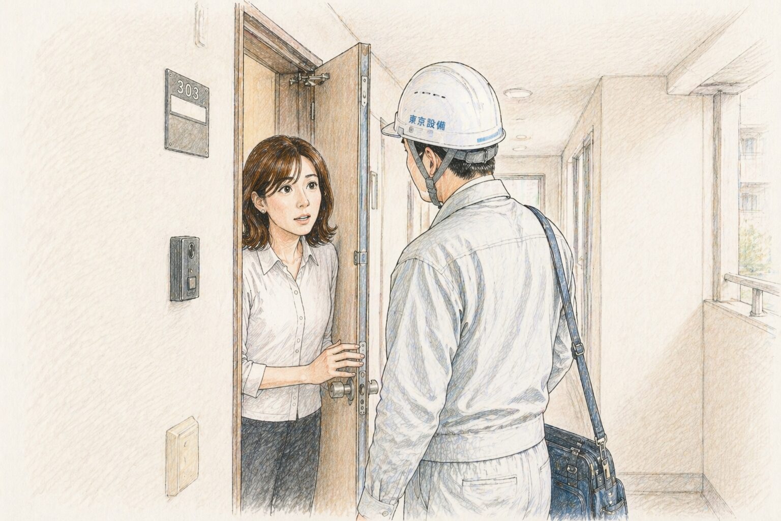 「階下で水漏れ被害が出ているので、調べさせていただけますか?」
