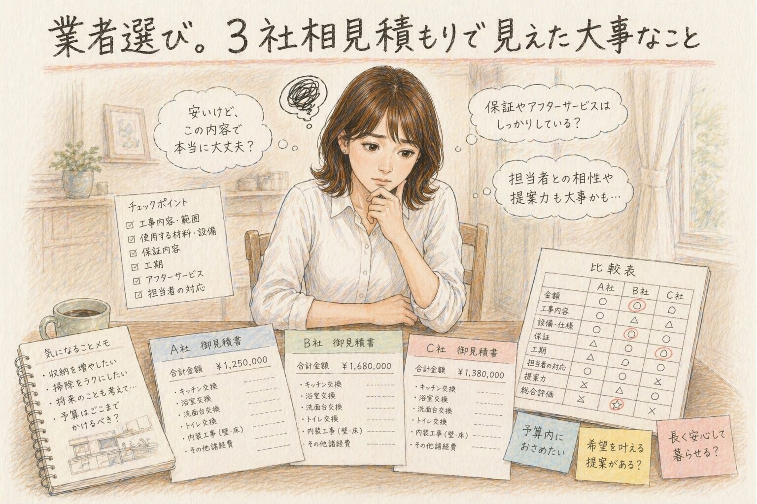 価格だけでなく、見積書の「中身」を比較することで、業者の誠実さが見えてきました。